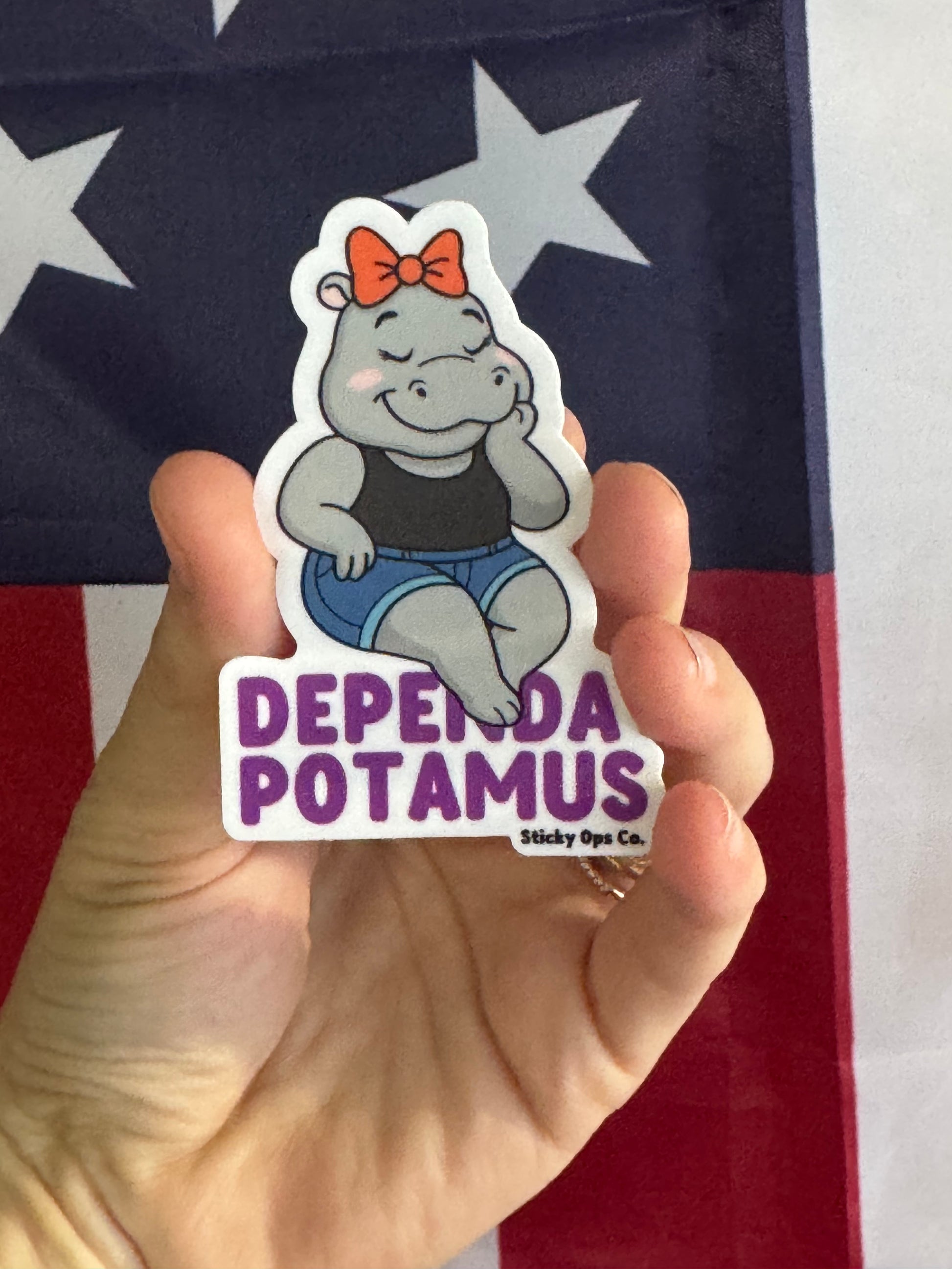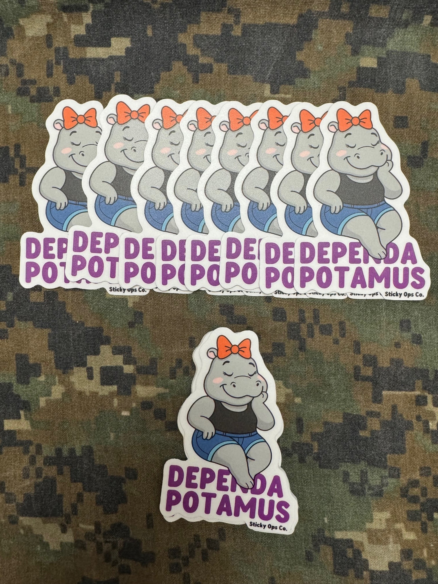 Shout out to the military wives! Proudly embracing the legend. This durable, water-resistant vinyl sticker features the iconic hippo in her natural habitat — bow on point, shorts high and tight, and absolutely unbothered. Perfect for water bottles, laptops, or slapping on anything that needs a little military spouse humor.